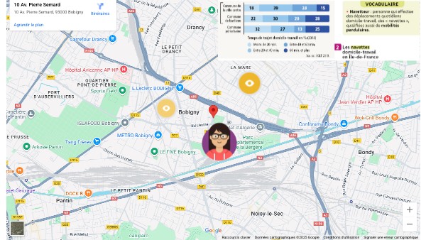 Julie, une habitant de Bobigny témoigneJ'ai grandi dans les quartiers populaires du 2ème arrondissement de Paris. J'ai acheté un appartement de 30 m² avec un budget de 190 000 euros. Je suis dans un quartier plutôt récent dans une résidence neuve. C'est une ville dynamique qui se modernise. Mon appartement est à proximité d'un grand parc. J'ai besoin de rester très proche de Paris car j'aime être à proximité des services que concentre la capitale : banque, tribunal, centre médical, services administratifs, entreprises, centres commerciaux. Je n'ai pas de voiture et j'utilise les transports en commun : tram, noctilien, bus, métro.