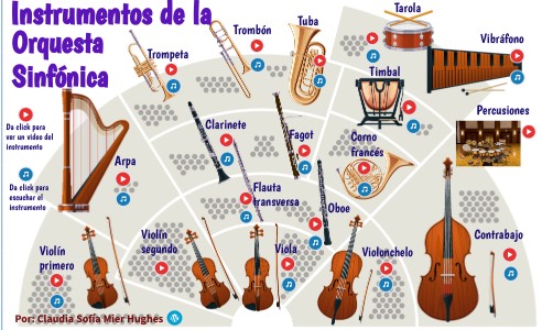 Con esta imagen conocerás los nombres de los instrumentos musicales y su sonido.