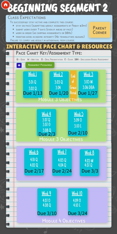 - stay on pace (submitting weekly assignments by Friday @3pm)