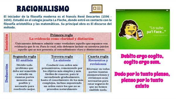 Dubito ergo cogito, cogito ergo sum. Dudo por lo tanto pienso, pienso por lo tanto existo