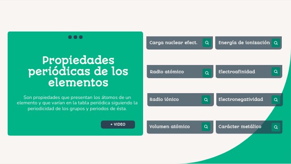 Son propiedades que presentan los átomos de un elemento y que varían en la tabla periódica siguiendo la periodicidad de los grupos y periodos de ésta.
