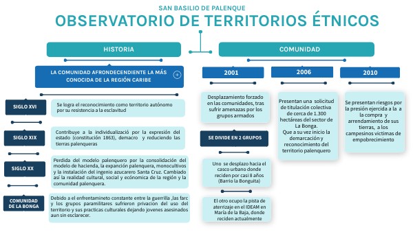 Presentan una solicitud de titulación colectiva de cerca de 1.300 hectáreas del sector de La Bonga.Que a su vez inicio la demarcación y reconocimiento del territorio palenquero