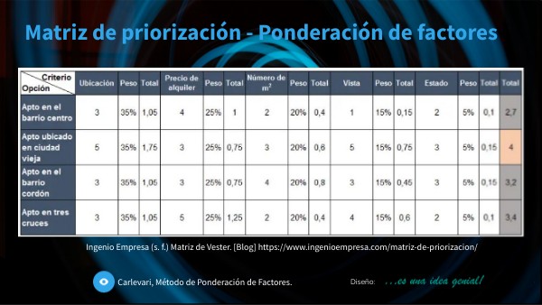 Ingenio Empresa (s. f.) Matriz de Vester. [Blog] https://www.ingenioempresa.com/matriz-de-priorizacion/