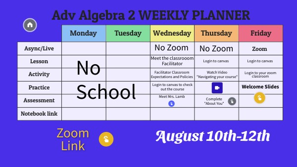 Adv Algebra 2 WEEKLY PLANNER