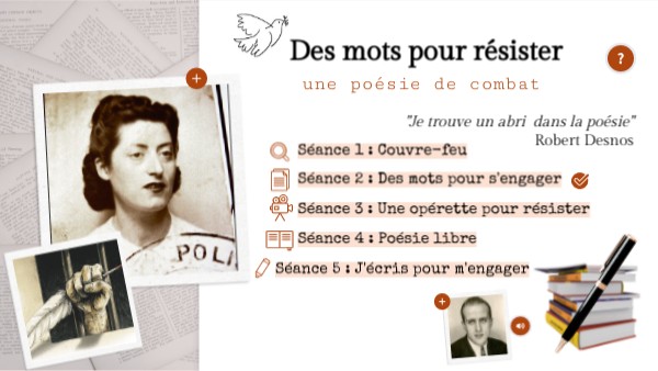 en vers libres et sans obligation de rimes. Vous veillerez à utiliser des figures de style variées. Vous emploierez le vocabulaire de l'engagement et de la Résistance.