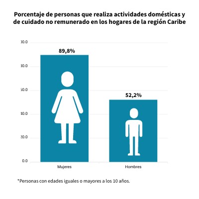 Porcentaje de personas que realiza actividades domésticas y de cuidado no remunerado en los hogares de la región Caribe