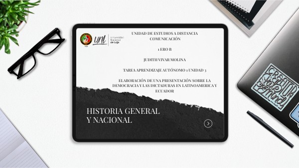 UNIDAD DE ESTUDIOS A DISTANCIA COMUNICACIÓN 1 ERO B JUDITH VIVAR MOLINA Tarea Aprendizaje Autónomo 1 Unidad 3 ELABORACIÓN DE UNA PRESENTACIÓN SOBRE LA DEMOCRACIA Y LAS DICTADURAS EN LATINOAMERICA Y ECUADOR