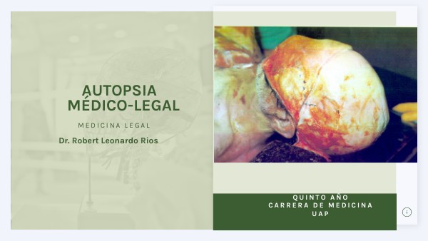 La autopsia o necropsia médico-legal es el examen externo e interno de un Cadáver realizado por un médico que aplica las técnicas y procedimientos de la Anatomía Patológica internacionalmente aceptados para estudio de un caso en que se investiga judicialmente una muerte.
