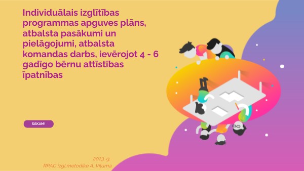 Individuālais izglītības programmas apguves plāns, atbalsta pasākumi un pielāgojumi, atbalsta komandas darbs, ievērojot 4 - 6 gadīgo bērnu attīstības īpatnības