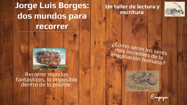 En este viaje vas a ser el protagonista y el autor de tu propia historia. Vas a conocer e internarte en un mundo donde lo imposible sucede. O quizás prefieras descubrir unos seres fantásticos que de solo verlos... Mirar, Leer, conocer, dibujar y escribir son las operaciones que dispararán tu imaginación hasta lugares insospechados. Podés elegir qué camino transitar y por donde querés comenzar. ¿Cuentos fantásticos? ¿Seres imaginario? Cada recorrido termina con un texto inventado por vos o con un dibujo o un texto si elegís el de los seres imaginarios.s.