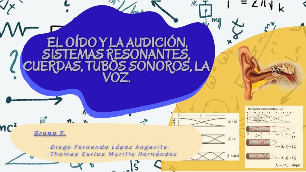 El oído y la audición, sistemas resonantes, cuerdas, tubos sonoros, la voz.