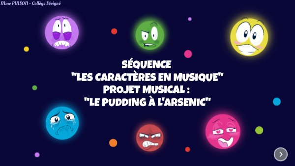 Séquence "les caractères en musique" Projet musical : "Le pudding à l'arsenic"