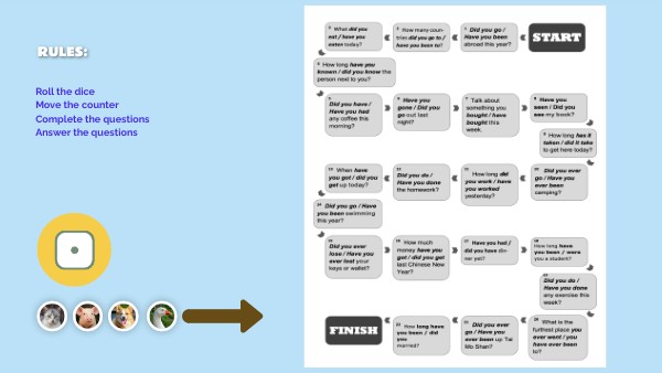 Roll the diceMove the counter Complete the questions Answer the questions
