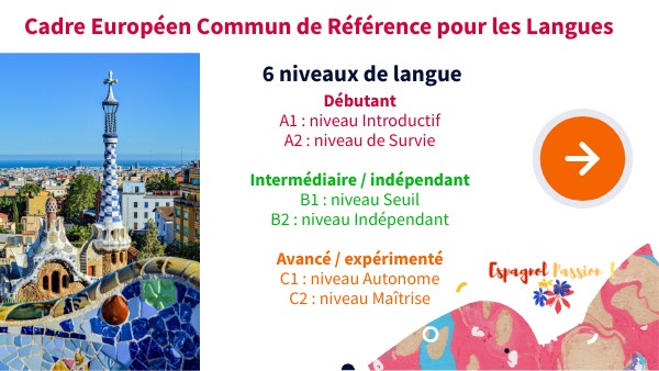DébutantA1 : niveau IntroductifA2 : niveau de SurvieIntermédiaire / indépendantB1 : niveau SeuilB2 : niveau IndépendantAvancé / expérimentéC1 : niveau Autonome C2 : niveau Maîtrise