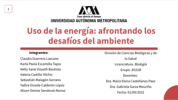 División de Ciencias Biológicas y de la SaludLicenciatura: Biología Grupo: B102B Docentes: Dra. Maria Elena Castellanos Paez Dra. Gabriela Garza Mouriño Fecha: 01/09/2022