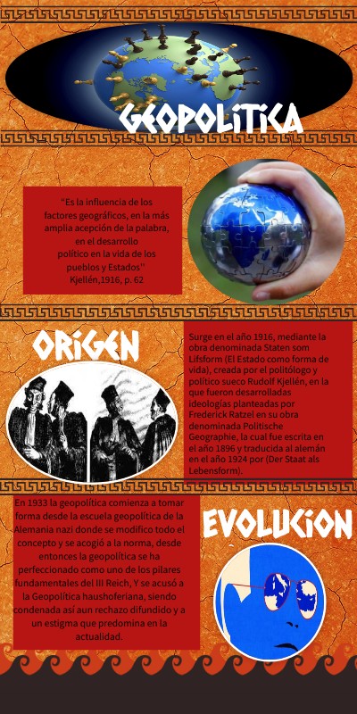 “Es la influencia de los factores geográficos, en la más amplia acepción de la palabra, en el desarrollo político en la vida de los pueblos y Estados'' Kjellén,1916, p. 62