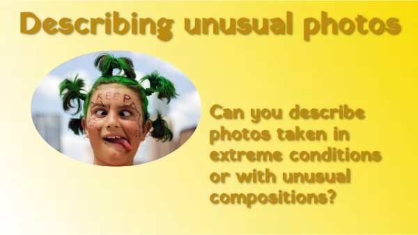 Can you describe photos taken in extreme conditions or with unusual compositions?