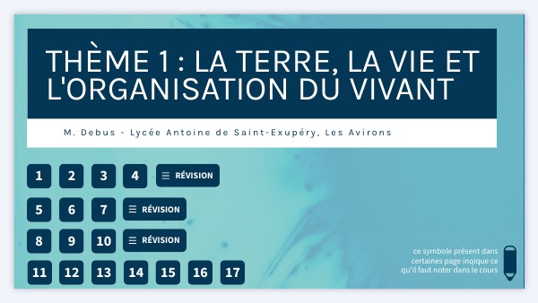 Thème 1 : La Terre, la vie et l'organisation du vivant