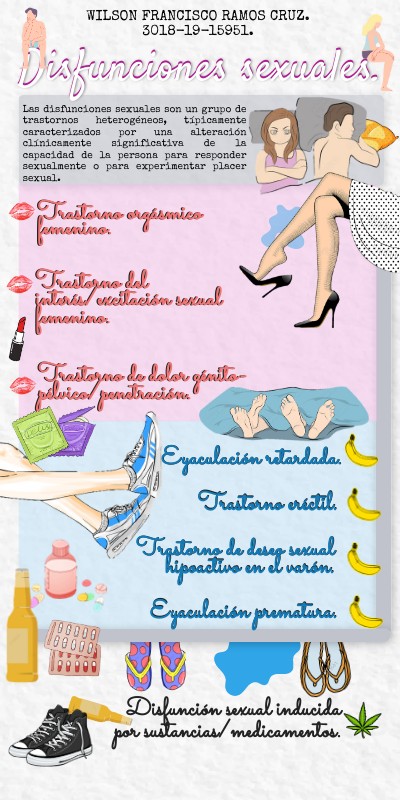 Las disfunciones sexuales son un grupo de trastornos heterogéneos, típicamente caracterizados por una alteración clínicamente significativa de la capacidad de la persona para responder sexualmente o para experimentar placer sexual.