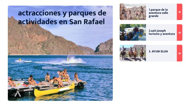 Ubicación: El Parque está ubicado a 27 Km. Del centro de la ciudad de San Rafael y 29 Km. Del dique Valle Grande. Se ingresa por la R.P. 173 Km. (viniendo desde la ciudad, 500 mts. Luego del pórtico de ingreso a Valle Grande, pasando el badén, a la derecha, tres grandes carteles por camino consolidado en buen estado). Se puede ingresas en autos y bus doble piso, hasta nuestra playa de estacionamiento cubierto con tela antigranizo. Internet: Servicio de Wi Fi sin cargo. Ingreso: se abona un ingreso que varía el valor según la época del año. Se incluye estacionamiento, sombra, acceso a los sanitarios, piscina de montaña, charla de observación de estrellas. Lo abonan todas las personas a partir de los 3 años cumplidos. Se permite el ingreso de alimentos y bebidas (no alcohólicas). No se permite el ingreso de mascotas. Personas con inconvenientes de movilidad, adultos mayores o infantes, consulte forma de ingreso desde la playa de estacionamiento a la zona de servicios. Espacios comunes: Disponemos de sombras con asientos y mesas tipo palets. En la zona de piscina, no se permite el ingreso de comidas y bebidas. El uso de las reposeras y camastros a orillas de la piscina, son de uso compartido, una vez que no se encuentra la persona haciendo uso de las mismas, debe dejase disponible para que otra persona las utilice.