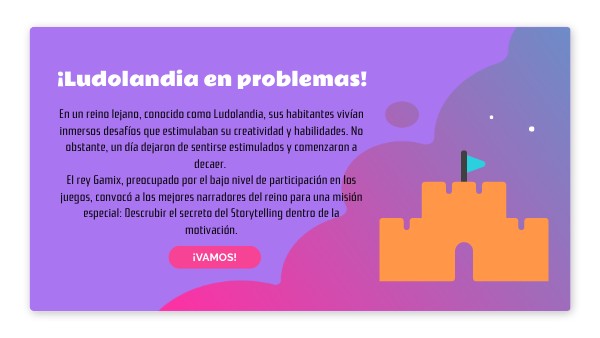 En un reino lejano, conocido como Ludolandia, sus habitantes vivían inmersos desafíos que estimulaban su creatividad y habilidades. No obstante, un día dejaron de sentirse estimulados y comenzaron a decaer. El rey Gamix, preocupado por el bajo nivel de participación en los juegos, convocó a los mejores narradores del reino para una misión especial: Descrubir el secreto del Storytelling dentro de la motivación.