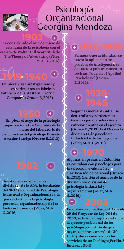 Algunas empresas en Colombia ya contaban con psicólogos para la selección, evaluación y clasificación de personal (Orozco E.,2013). Cambia el nombre de la división por división de psicología industrial y organizacional (Vélez, M. A. G.,2016).