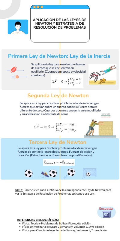 NOTA: Hacer clic en cada subtítulo de la correspondiente Ley de Newton para ver la Estrategia de Resolución de Problemas aplicando esa Ley.