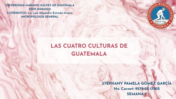 UNIVERSIDAD MARIANO GÁLVEZ DE GUATEMALA SEDE NARANJO CATEDRÁTICO: Lic. Luis Alejandro Estrada Urraca ANTROPOLOGÍA GENERAL