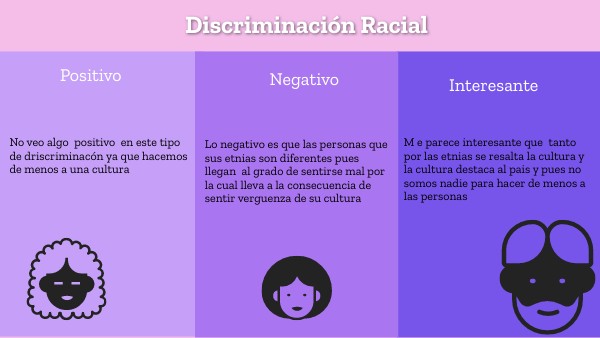 Lo negativo es que las personas que sus etnias son diferentes pues llegan al grado de sentirse mal por la cual lleva a la consecuencia de sentir verguenza de su cultura
