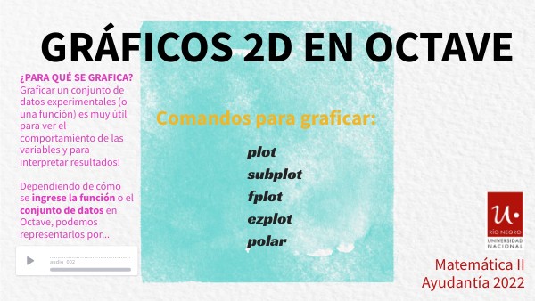 Dependiendo de cómo se ingrese la función o el conjunto de datos en Octave, podemos representarlos por...