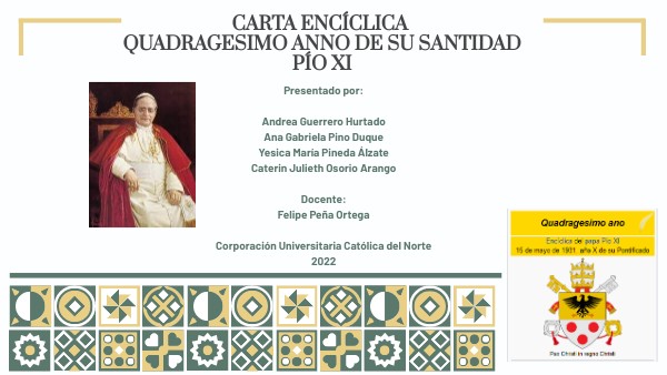 Análisis Enciclica Quadragesimo Anno de su santidad PÍO XI a partir de los principios de la Doctrina Social de la Iglesia.