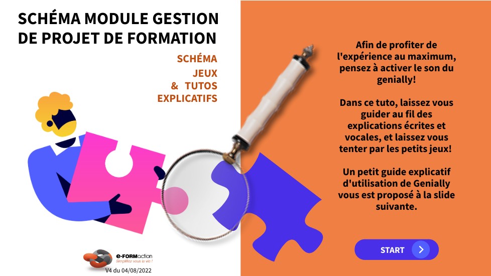 Afin de profiter de l'expérience au maximum, pensez à activer le son du genially! Dans ce tuto, laissez vous guider au fil des explications écrites et vocales, et laissez vous tenter par les petits jeux! Un petit guide explicatif d'utilisation de Genially vous est proposé à la slide suivante.