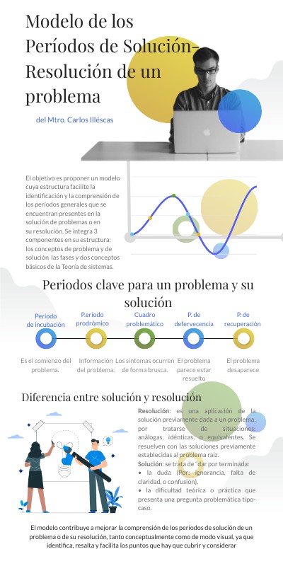 El objetivo es proponer un modelo cuya estructura facilite la identificación y la comprensión de los períodos generales que se encuentran presentes en la solución de problemas o en su resolución. Se integra 3 componentes en su estructura: los conceptos de problema y de solución las fases y dos conceptos básicos de la Teoría de sistemas.