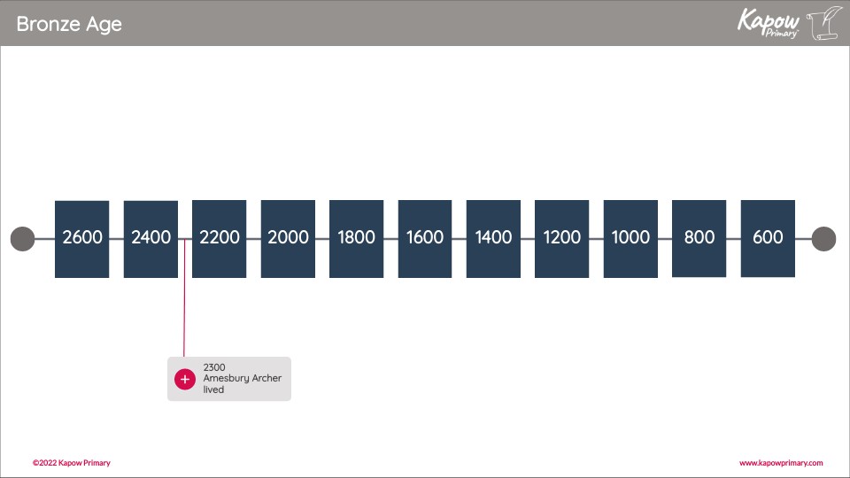 The Amesbury Archer is a man who lived in Britain in approximately 2,300 BC. He was found with a large collection of grave goods including bronze, gold, flint arrowheads and pottery. These items were included so he had everything he needed for the afterlife.