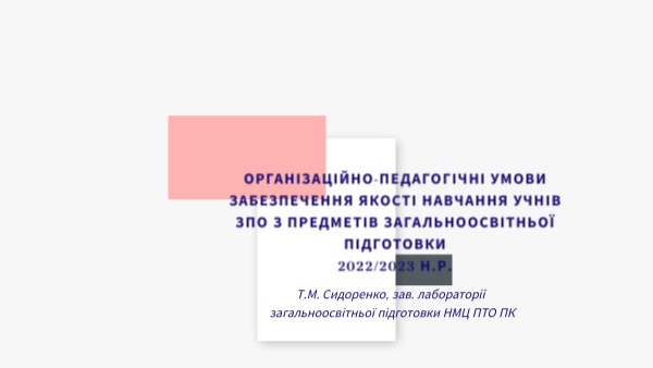 Організаційно-педагогічні умови забезпечення якості навчання учнів ЗПО з предметів загальноосвітньої підготовки2022/2023 н.р.