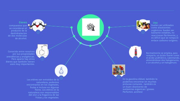 Suelen ser utilizados como disolventes orgánicos. Suelen ser bastante estables, no reaccionan fácilmente, y es difícil que se rompa el enlace carbono-oxígeno.