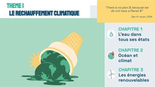 Il y a beaucoup d’eau sur Terre, elle peut être sous 3 états : solide, liquide ou gaz (vapeur).