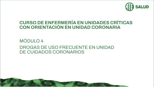 drogas de uso frecuente en Unidad de Cuidados Coronarios