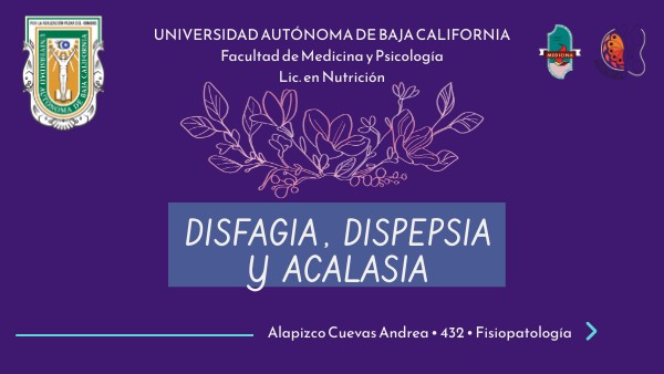 1. Diferenciar disfagia, dispepsia y acalasia2. Identificar sus respectivas etiologías así como sus tratamientos 3. Conocer la epidemiología de cada una de ellas 4. Distinguir su fisiopatología, signos y síntomas (diagnóstico diferencial) 5. Saber como influye la alimentación en éstas