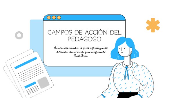 Actualmente las necesidades globales exigen la formación de seres humanos capaces de solucionar problemáticas sociales. La pedagogía nos permite construir bases sólidas de conocimiento cientifico, metodológico, práctico y crítico en participación colectiva para dar respuesta a roles según el perfil o campo profesional. Es importante considerar los campos de acción del pedagogo y el compromiso que cada uno tiene para con la sociedad contemporánea.