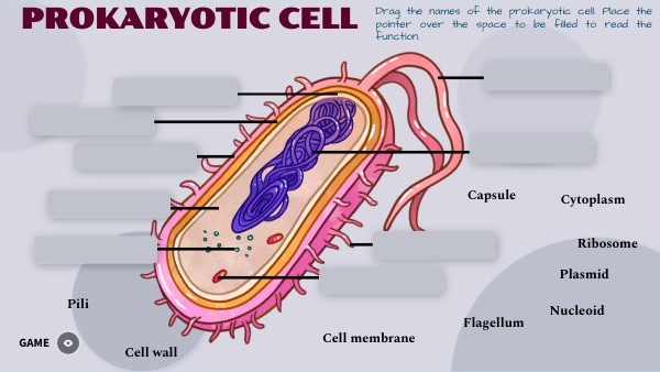 Drag the names of the prokaryotic cell. Place the pointer over the space to be filled to read the function.