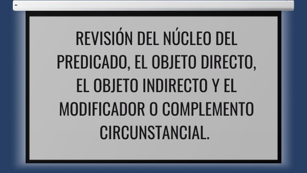 Revisión del núcleo del predicado, el objeto directo, el objeto indirecto y el modificador o complemento circunstancial.