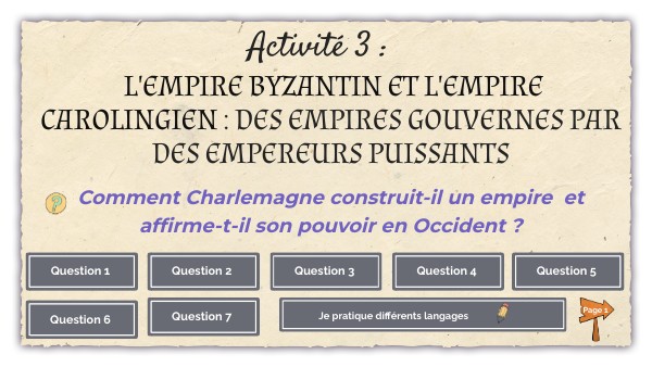 5) Documents 2 et 6 : a. Docs. 2 et 6 : Depuis quel lieu Charlemagne gouvernait-il son empire ? b. Doc. 6 : Quelles sont les différentes fonctions de son palais ? Argumentez à partir d’exemples .