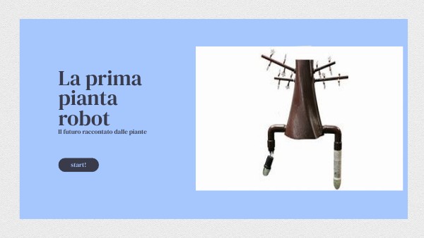 Il contatto con la natura ci trasmette serenità . La nostra vita gira intorno alle piante che sono fonte di ossigeno , cibo e legname. Hanno una funzione chiave nella coltivazione dei terreni. Assorbono anidride carbonica, rilasciano ssigeno e ci danno temperature più basse. Tre anni fa iniziano gli studi del "plantoide", la pianta robot che imita la natura muovendo le radici verso la luce solare e l'acqua; veri e propri robot ispirati al movimento delle piante. Come le piante i robot sono stati studiati per muoversi, per crescere e per far fronte ai loro bisogni vitali (luce, acqua). I robot hanno delle radici che si muovono nel terreno grazie a dei sensori che cercano l'acqua e altre sostanze. Con l'utilizzo di ministampanti 3D, crescono e costruiscono nuove parti, proprio come una vera pianta.