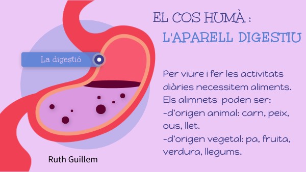 L'aparell digestiu té la funció de treure els nutrients dels aliments que necessita el nostre cos. Està format per: 1. El tub digestiu 2. El fetge. 3. El pàncrees.