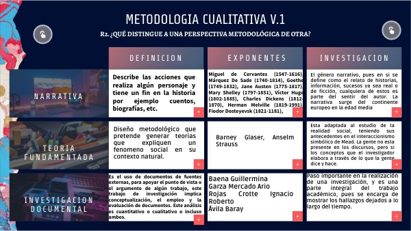 Esta adaptada al estudio de la realidad social, teniendo sus antecedentes en el interaccionismo simbólico de Mead. La gente no esta presente en los discursos, pero si los conceptos que el investigador elabora a través de lo que la gente dice y hace.