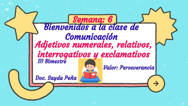 Fecha: Lunes, 12 de setiembre de 2022 Semana: 6 Tema: Adjetivos numerales, relativos, interrogativos y exclamativos.