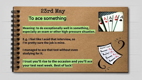 E.g. I feel like I aced that interview, so I'm pretty sure the job is mine.I managed to ace that test without even studying for it.