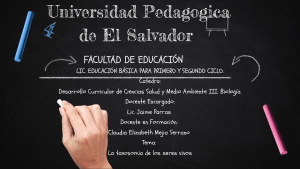LIC. EDUCACIÓN BÁSICA PARA PRIMERO Y SEGUNDO CICLO. Catedra: Desarrollo Curricular de Ciencias Salud y Medio Ambiente III: Biología. Docente Encargado: Lic. Jaime Parras Docente en Formación: Claudia Elizabeth Mejia Serrano Tema: La taxonomia de los seres vivos