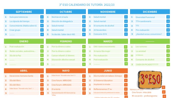 3º ESO CALENDARIO DE TUTORIA 2022/23